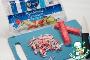 Конечно, крабовое мясо здесь будет как нельзя кстати, но не у всех есть возможность его купить, поэтому... имеем то, что имеем.)))