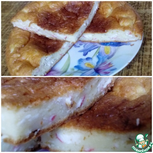 Соответственно после перемешивания получилось не тесто, а достаточно густая масса, которая после запекания оказалась банальной запеканкой. Довольно вкусной, но очень далекой от пирога...