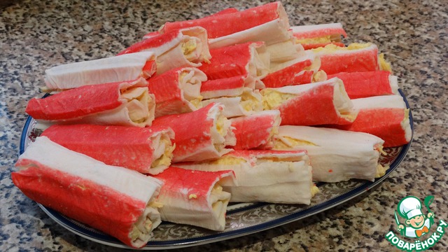 Вкусные рулетики из крабовых палочек "А`море" с нежной начинкой.