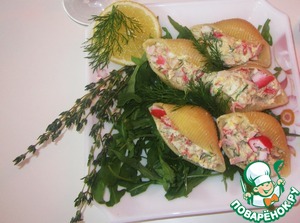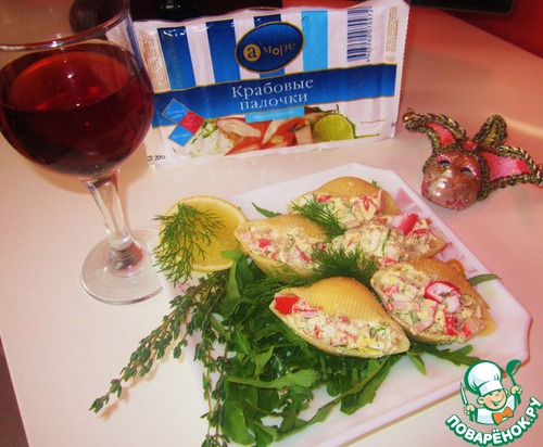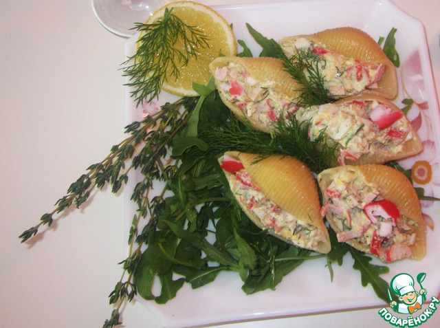 Ракушечки с крабовой начинкой прекрасно подойдут для праздничного стола и для семейного обеда! Быстры в приготовлении, приятные на вкус!