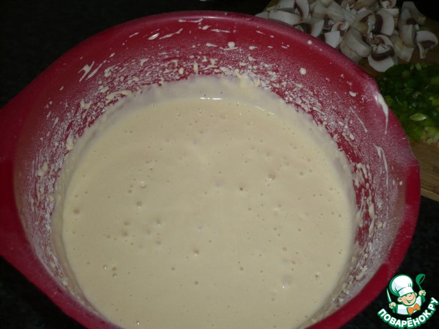 Тесту дать постоять минут 15! В это время можно заняться соусом! После того, как 15 минут прошло, взбить ещё раз!