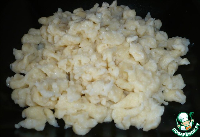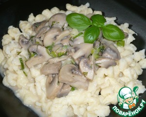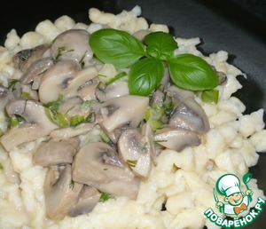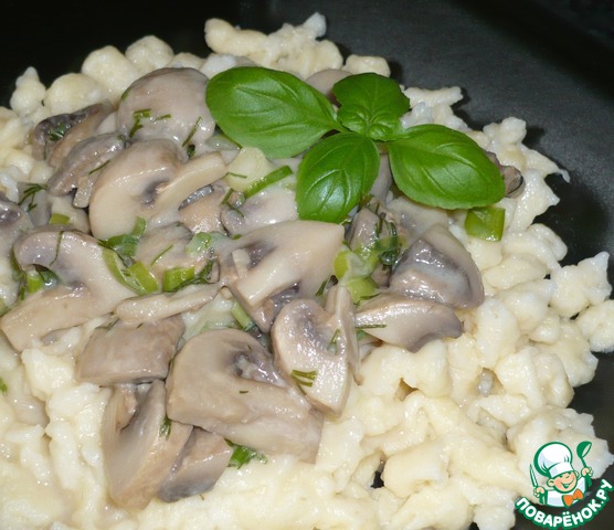 Рецепт «Творожные шпецле в сливочно-шампиньонном соусе»: