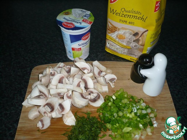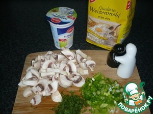 Ингредиенты для «Творожные шпецле в сливочно-шампиньонном соусе»: