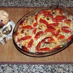 Моя духовка сильно горит снизу, поэтому предпочитаю сделать огонёк поменьше и подождать чуть подольше. У кого таких проблем нет - можно смело готовить на 200*С, время запекания сократится минут до 45.