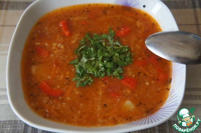 Обычно с пшеничной крупой готовила только грибной суп, теперь и томатный приживется в моем меню.