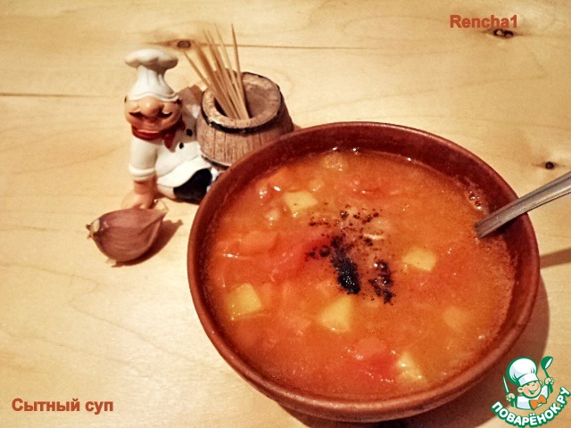 Предлагаю рецепт сытного супчика, он так и называется "Сытный суп" (журнал "Кулинарный практикум"). Скоро зима, прогнозируют, что будет она, как никогда, холодной. Вот тут и пригодится горячий ароматный сытный суп, который согреет и тело, и душу, заряжая энергией и бодростью.