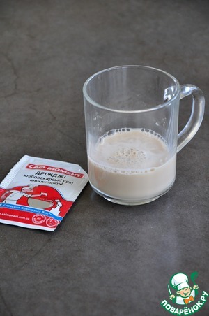 Дрожжи развести теплой водой, добавить сахар, дать набухнуть.