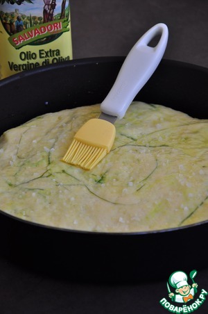 Придать тесту желаемую форму, дать тесту подойти минут 20, если хотите пышную фоккаччу, тогда оставьте тесто подходить на 30-40 минут. Смазать фокаччу оливковым маслом, посыпать оставшейся крупной морской солью. Выпекать при 180*С 20-30 минут.
