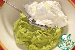 В полученную массу добавляем рикотту (у меня была домашняя). Солим, перчим.