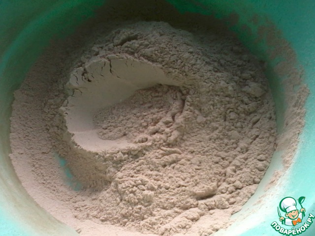 Муку просеять в миску. Смешать с какао, содой и разрыхлителем. -