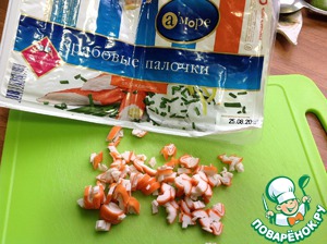 - Крабовые палочки (125 г) — 0,5 пач.