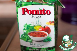 Добавляем туда томаты с базиликом. Это на любителя. У меня всегда стоит в холодильнике такая штука, мне очень нравится