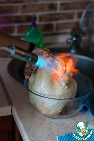 • Так как у меня была курица домашняя, то перед готовкой я её обработала из горелки. ЭТО ОПАСНО! Будьте бдительны.