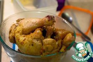 • Мажем этой смесью курицу, и ставим в холодильник. У меня она стояла 12 часов, т. е. ночь.