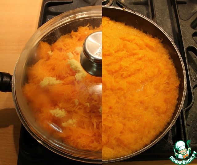 Тушим тыкву с имбирeм около 10-15 минут. -