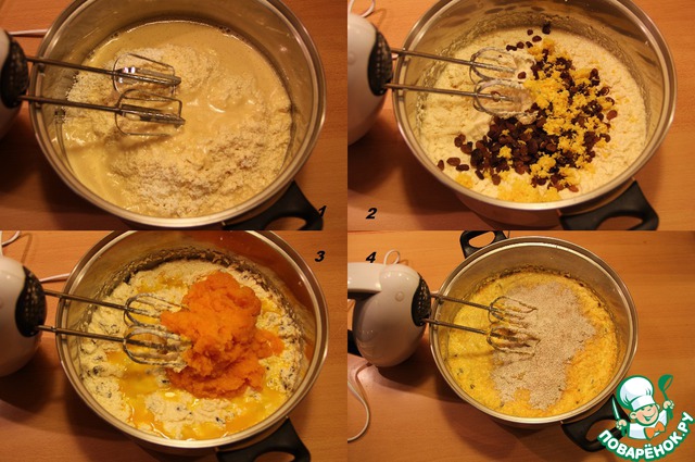 Вводим поочерёдно и мешаем на медленных оборотах: