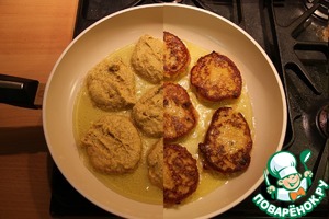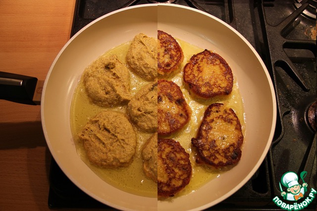Обжариваем на оливковом масле с каждой стороны до чуть золотистого цвета.