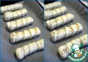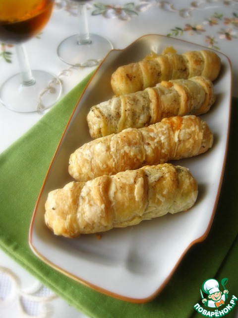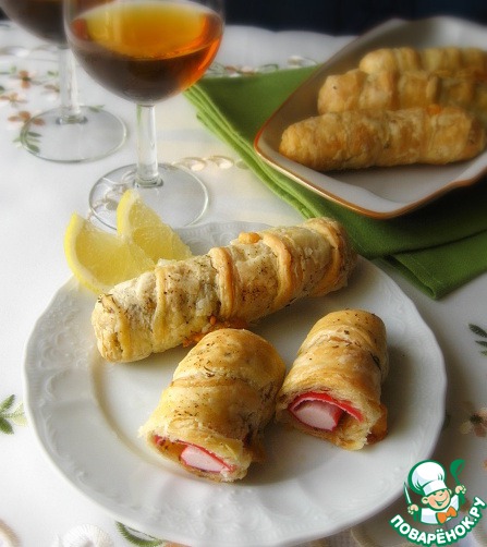 Рецепт «Слоёные завитушки с крабовыми палочками»: