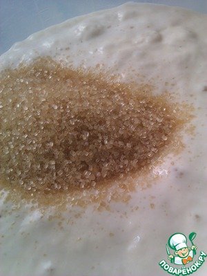 • К закваске добавляем сахар, корицу, соль и воду, все перемешиваем.