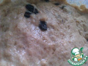 • Добавляем муку и изюм. Все тщательно смешиваем. Тесто должно получиться мягкое, но достаточно густое, чтобы Вы смогли лепить из него.
