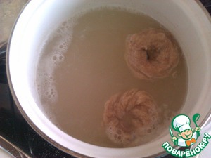 • И по очереди опускаем их в кипящую воду на 3-5 минут. Пока бублики варятся, у них образовывается корочка, поэтому если Вы хотите мягкимие булочки, сократите время варки.