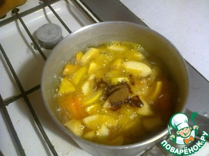 • Варим 20 минут под крышкой на небольшом огне до размягчения тыквы и айвы. (Если у вас кусочки маленькие, то можно и меньше)