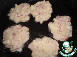 На раскаленное масло выкладываем получившуюся массу по одной столовой ложке. Жарим "оладлеты" по 3 минуты с каждой стороны на среднем огне.