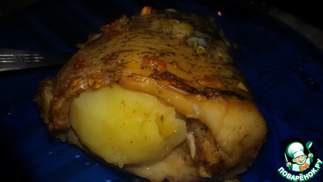 Рыба и картофель подрумянились, мясо рыбы легко отходит от костей - блюдо готово. -