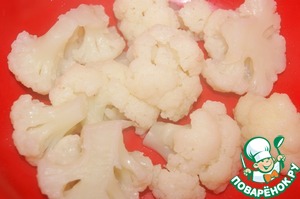 Цветную капусту разобрать на соцветия и отварить до готовности. Можно использовать и замороженную капусту.