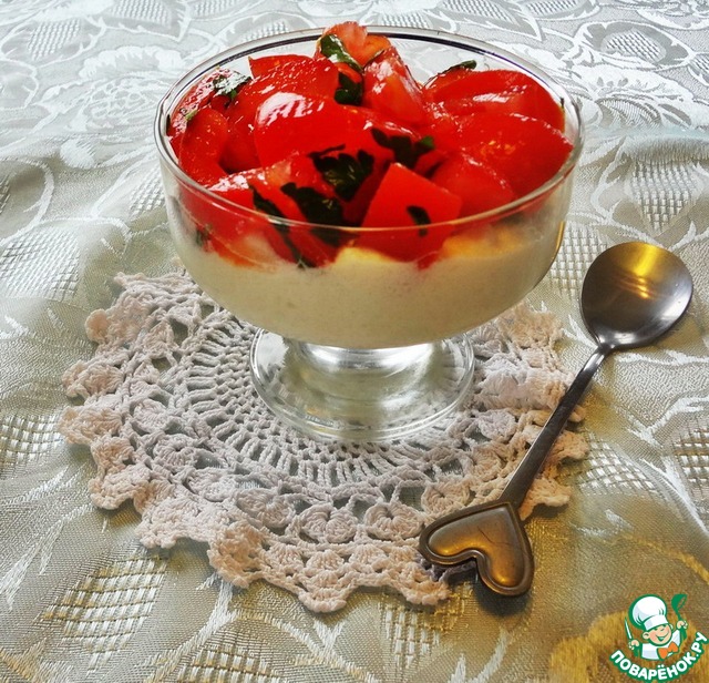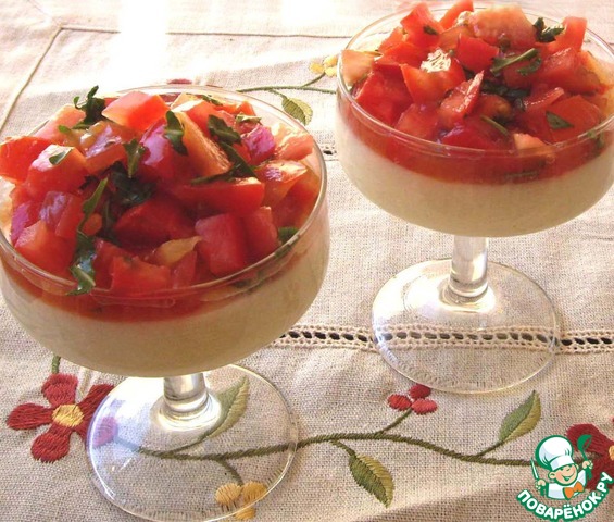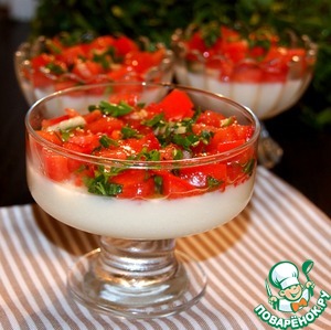 Поместить салат сверху панна-котты и сразу же сервировать.