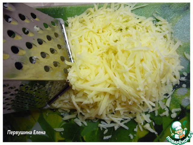 Сыр натрем на крупной терке. Расплавляем его на сухой сковороде, постоянно помешивая.