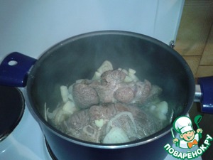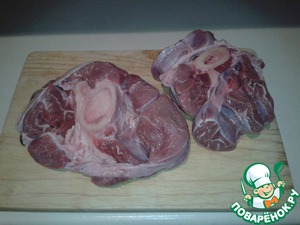 • Мясо помыть, приготовить для отправки в кастрюлю.