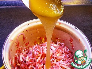 Складываем все инградиенты в подходящую миску, кастрюлю (стекло, керамика, пищевой пластик). Добавляем соль, тмин, мёд и аккуратно перемешиваем.