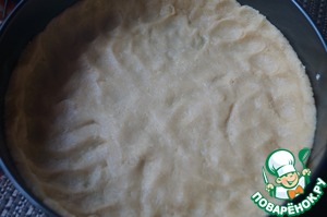 Вторую часть теста можно завернуть в виде шара в обычный пакет и тоже отправить в холодильник. Я решила испечь из нее пирог. И аккуратно распределила по дну разъёмной формы. Форму тоже поставила в холодильник.