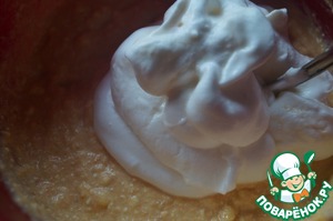 Взбить 2 белка до пиков и аккуратно вмешать в нашу начинку.
