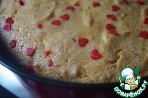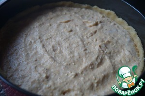 Готовую начинку выложить поверх теста в разъёмную форму.