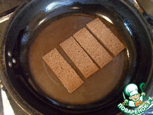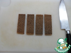 Вырезаем одинаковые 4 гренки из черного бородинского хлеба