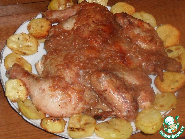 Вот такая курочка получилась - без масла, с румяной корочкой и вкуснейшим соусом - для ужина в теплой компании самое то!