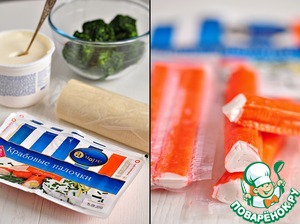 Ингредиенты для «Штрудель с крабовыми палочками и шпинатом»: