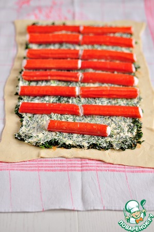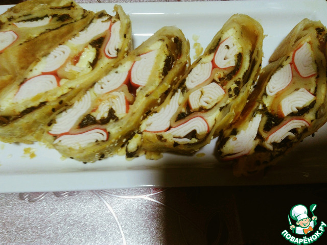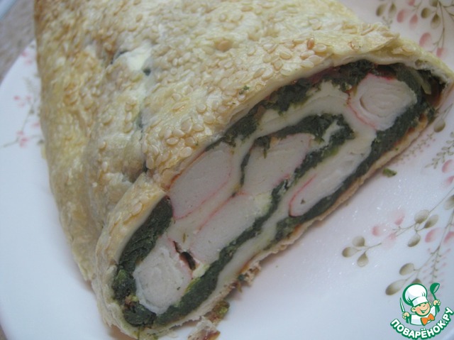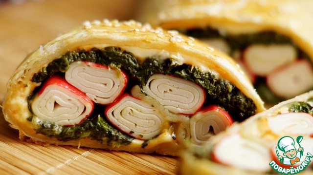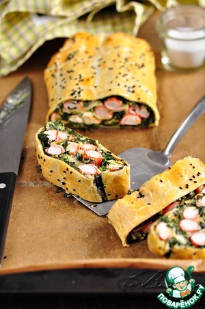 Рецепт «Штрудель с крабовыми палочками и шпинатом»: