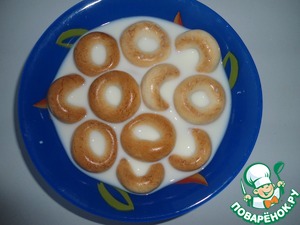 Сушки замочить в молоке на 15-20 минут.