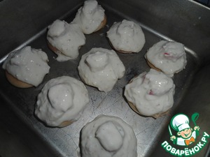 Сверху обмазываем творожно-сырным кремом. Отправляем крабовые домики в духовку на 30 минут при Т +180 градусов.
