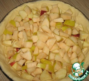 Фрукты очистить от кожуры и семян, нарезать кубиками и заполнить форму до высоты бортиков, можно чуть присыпать корицей. -