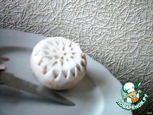 Кончиком ножа (плоскостью) наносим рисунок по всему периметру гриба.