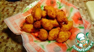 Разогреть растительное масло и жарить пышки во фритюре. С помощью двух ложек сформовать кнели, опускать их в раскалённое масло. Жарить минуты 3-4 до тех пор, пока они не зарумянятся.
