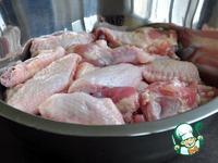 Куриные крылья помыть, разрезать на две части. Крайнюю фалангу удалить.