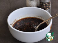 Смешать мед, соевые соусы, уксус, масло, соль, перец черный молотый. |