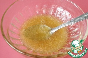 Желатин замочить в воде (3 ст. л.) и распустить на водяной бане. У меня желатин быстрорастворимый, поэтому я его просто развела в тёплой воде.