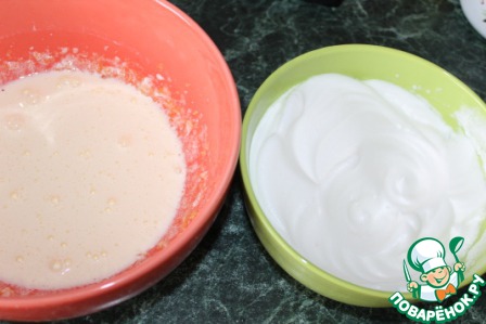 Аккуратно в тесто добавляем взбитые белки и перемешиваем.