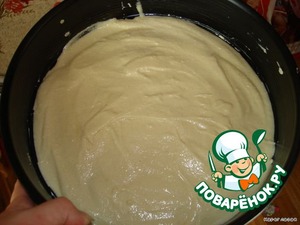 Половину теста выложить в форму для выпечки (смазав форму маслом). -